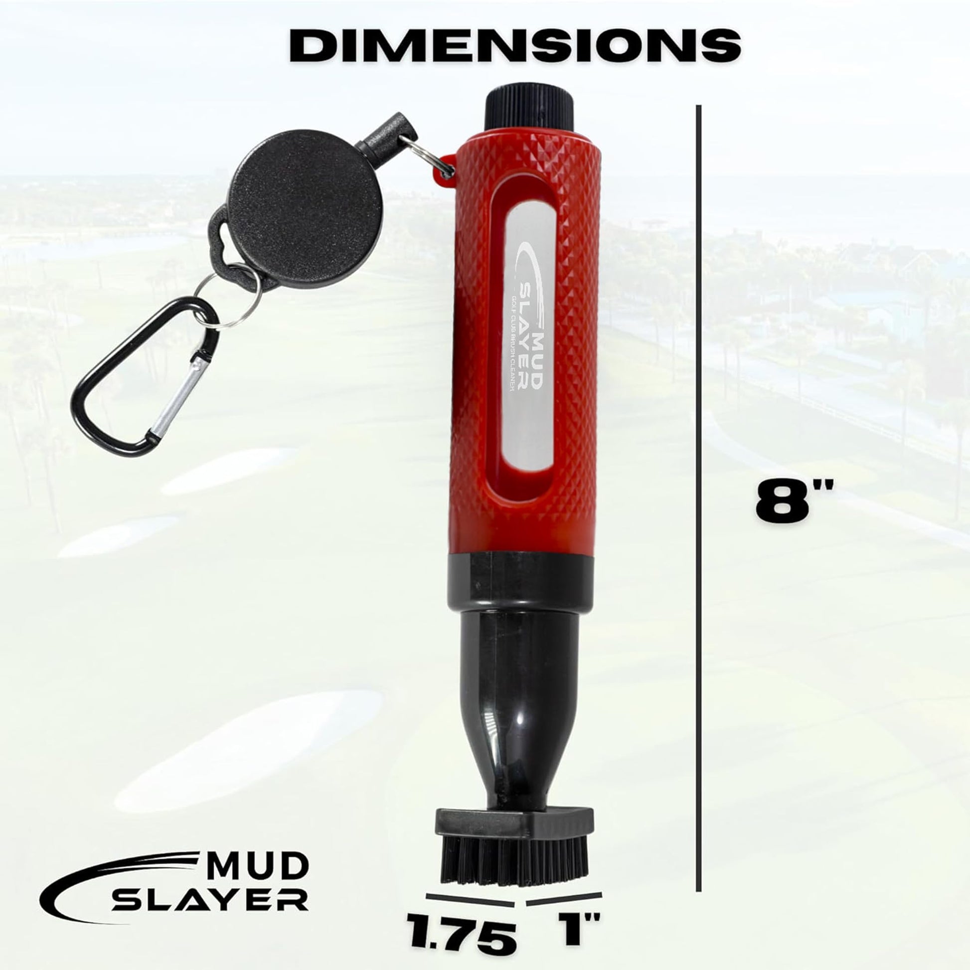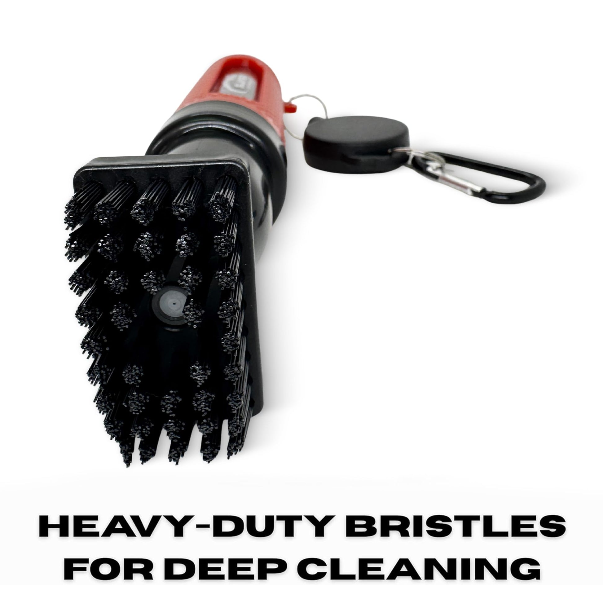 Equipped with a fast-action retractable leash, it clips securely to your golf bag or belt loop, so your brush is always within reach. No magnets to lose, no fumbling around — just grab, spray, scrub, and go.